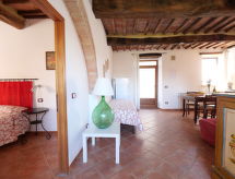 Ladanjska kuća "I Prati di Travale", na 2 kata, zasebna, okružena drvećem, livadama i poljima. 4 apartmana u residenceu. 1 km od centra mjesta Travale, 6 km od centra mjesta Montieri, 45 km od centra mjesta Siena, 45 km od mora. Za zajedničko korištenje: prirodno ostavljena parcela 3'000 m2, drveće, livada, bazen (12 x 6 m, 140 cm dubok, sezonska dostupnost: 15.May. - 15.Sep. bazen je otvoren u vremenu: 09:00-20:00). Vanjski tuš, mjesto za sjedenje. Bazen održava vlasnik/vrtlar. U kući: perilica za rublje (za zajedničko korištenje, uz doplatu). 400 m dugački neravan prilaz autom. Parking na parceli. Trgovina 1 km, supermarket 6 km, najam bicikli 5 km, park "Cornate e Fosini" 12 km, jezero za kupanje "Accesa" 19 km. Jahanje konja 5 km, pješačke staze od kuće 10 m. U blizini: Giardino dei Suoni 19 km, Abbazia di San Galgano 20 km, Dream Wood - Artistic park 30 km. Poznata jezera u blizini: Accesa 35 km. Pješačke staze: Mountain-bike 3 km. Prodaja domaćih poljoprivrednih proizvoda. Dodatna informacija: životinje u susjedstvu.Interior