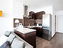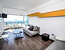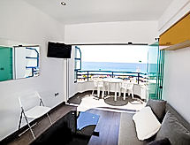 "Arenal 03", 1 -sobni studio 50 m2 na 3. katu. Objekt pogodan za 2 odraslih. Svijetlo, renoviran godine 2016, moderno i stilski uređen: dnevno-spavaća soba, bez ormara s 2 kauča za 1 osobu, kutom za blagovanje, TV-om sa sat. prijemnikom, digitalnim TV, radiom, el. peći i bojlerom (30 litara) električnim roletnama. Izlaz na terasu. Otvorena kuhinja (pećnica, 2 staklokeramičke ploče za kuhanje, toster, kuhalo za vodu, mikrovalna pećnica, el. aparat za kavu) s malim barom. Tuš/WC. El. grijanje. Grijanje na raspolaganju samo od 01.11. do 30.05. Garnitura za sjedenje. Panoramski pogled na more. Na raspolaganju: perilica za rublje, glačalo, sušilo za kosu. Dodatna informacija: apartman za nepušače. AT450428-A- postrojenja