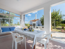 "Arnao", 3 -sobni apartman 70 m2, u prizemlju. Svrsishodno i komforno uređen: dnevni boravak/blagovaona s TV-om (plosnatim TV ekranom), klima uređajem i grijanjem na topli zrak. Izlaz na terasu. 1 bračna soba s 1 x 2 kreveta na kat, klima uređajem. 1 bračna soba s ventilatorom. Kuhinjska niša (4 ploče za kuhanje, toster, kuhalo za vodu, mikrovalna pećnica, zamrzivač, el. aparat za kavu). Tuš/bidet/WC. Grijanje, klima uređaj, grijanje toplim zrakom (uz doplatu), bojlerom (50 litara). Grijanje na raspolaganju samo od 01.12. do 31.03, Grijanje samo u pojedinim prostorijama. Terasa 12 m2 (natkrita). Garnitura za sjedenje, vrtni roštilj. Na raspolaganju: perilica za rublje, glačalo, mrežice protiv komaraca, visoka dječja stolica, dječji krevetić do 2 godine, sušilo za kosu. Internet (wireless LAN [WLAN], besplatan). Parking (1 automobil). Najviše 1 kućni ljubimac / pas dozvoljen.- postrojenja