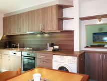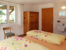 "Aster (RID400)", 7 -sobna kuća 145 m2 na 2 etaže, u povišenom prizemlju. Prostrano i svijetlo, udobno i s puno drva uređena: dnevni boravak s švedskom peći i TV-om sa sat. prijemnikom. 1 bračna soba s umivaonikom i tušem. Gornji kat: 2 bračne sobe, svaka soba s umivaonikom i tušem. 2 bračne sobe, svaka soba s umivaonikom. Blagovaona s stolom za blagovanje i TV-om sa sat. prijemnikom. Kuhinja (pećnica, perilica za suđe, 4 staklokeramičke ploče za kuhanje, toster, kuhalo za vodu, mikrovalna pećnica, zamrzivač, el. aparat za kavu) s malim stolom za blagovanje, otvorom prema blagovaoni. Tuš/WC, odv. WC. Grijanje na naftu. Drveni pod. Veliki balkon, 2 terase. Garnitura za sjedenje, balkonski namještaj, ležaljke (8). Lijep pogled na planine. Na raspolaganju: perilica za rublje, glačalo, visoka dječja stolica, dječji krevetić. Internet (wireless LAN [WLAN], besplatan). Punionica za električna vozila. Dodatna informacija: prikladno za obitelji. Protupožarni alarm.- postrojenja