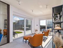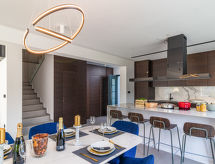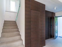 Moderna, lijepa vila "Athos", na 2 kata, godina izgradnje 2020. U zaseoku Karigador 4 km od centra mjesta Novigrad, mirno, sunčano mjesto, 200 m od mora, 200 m od plaže. Za samostalno korištenje: parcela 550 m2 (ograđena), travnjak 300 m2, bazen pravokutni, grijani (8 x 4 m, 150 cm dubok, sezonska dostupnost: 01.Jan. - 31.Dec.) s unutarnjim stepenicama. Vanjski tuš, sjenica (16 m2), pergola (16 m2), vrtna garnitura za sjedenje, roštilj. U kući: pristup internetu, hidromasažni bazen, krovna terasa, alarmni sustav, perilica za rublje. Transfer s aerodroma (uz doplatu). Parking (za 2 automobila) uz kuću na parceli. Trgovina 100 m, supermarket 4 km, restoran, cafe 100 m, pješčana plaža, stjenovita plaža 200 m. Dječje igralište 100 m. Dodatna informacija: prikladno za obitelji. Vlasnik ne prihvaća grupe mladih. Bazen s hidromasažom. Potrebno je 7 dana unaprijed najaviti ukoliko se želi grijanje bazena. Hidromasažni bazen za 5 osoba, garnitura za sjedenje se nalaze na krovnoj terasi (80 m2, vanjske stepenice). Video nadzor na imanju.Interior