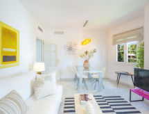 Lijepi, komforni stambeni objekt "Atico Marbella Real". 200 m od centra mjesta Puente Romano, u području Marbella Golden Mille, odlična pozicija: u samom centru, a ipak mirno, 800 m od mora, 800 m od plaže, prema istoku. Za zajedničko korištenje: prekrasan vrt za opuštanje, 5 bazena (sezonska dostupnost: 15.Jun. - 15.Sep.). Vanjski tuš. U kompleksu: prostorija za druženje prostorija za fitnes, stolni tenis, igraonica za djecu, dizalo. Parking. Supermarket 500 m, restoran 100 m, pekara 500 m, cafe 100 m, pješčana plaža 800 m. Objekt pogodan za 6. Vlasnik ne prihvaća grupe mladih. Residence pod nadzorom. Susjedstvo izrazito osjetljivo na buku. Očekuje se mir i pristojno ponašanje.Interior