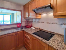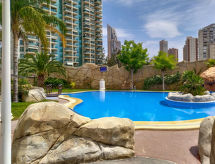 Cala de Finestrat: Ugodni stambeni objekt "Atrium Playa", na 25 kata. Na rubu mjesta, 4 km od centra mjesta Benidorm, sunčano mjesto, 300 m od mora, 300 m od plaže. Za zajedničko korištenje: parcela (ograđena), vrt, bazen (5 x 7 m, 50- 200 cm dubok, sezonska dostupnost: 01.Jan. - 31.Dec.). U kući: dizalo. Javni parking na ulici. Supermarket, restoran 100 m, bar 30 m, autobusna postaja "Benidorm" 300 m, pješčana plaža "Cala de Finestrat". Golf teren (18 rupa) 4 km, pješačke staze od kuće 300 m. U blizini: Terra Mitica 4 km, Terra Natura 4 km, Aqualandia 6 km, Mundomar 6 km, Alicante 37 km, Aeropuerto Alicante 55 km. Dodatna informacija: oprema za bebe na upit.Interior