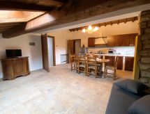 Turistički kompleks "Podere la Querciola", na 2 kata, renoviran godine 2021, okružen livadama i poljima. U četvrti Casino di Terra 11 km od centra mjesta Guardistallo, 14 km od centra mjesta Cecina, izolirano, mirno mjesto, 16 km od mora. Za zajedničko korištenje: parcela - bilje i drveće, bazen (6 x 11 m, 150 cm dubok, sezonska dostupnost: 01.May. - 15.Oct.). Bazen za djecu, vanjski tuš, hidromasažni bazen, vrtna garnitura za sjedenje, roštilj. U kompleksu: wireless LAN [WLAN], perilica za rublje (uz doplatu). Prilaz autom (700 m bijela cesta). Parking. Trgovina 11 km, restoran 2 km, bar 2 km, pješčana plaža "Marina di Cecina" 16 km. U blizini: Volterra 24 km, Pisa 70 km, Firenze 100 m.Interior