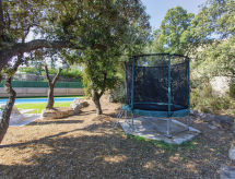 "Avets", 6 -sobna vila 243 m2 na 2 etaže. Moderno uređena: dnevni boravak/blagovaona s digitalnim TV. Izlaz u vrt, na bazen. 1 soba s 1 franc. krevetom (160 cm, dužina 200 cm), kadom i hidromasažna kada. 2 sobe, svaka soba s 1 x 2 kreveta na kat (90 cm, dužina 200 cm). Kuhinja (pećnica, perilica za suđe, 4 staklokeramičke ploče za kuhanje, toster, kuhalo za vodu, mikrovalna pećnica, gril, el. aparat za kavu). Kada/WC. Klima uređaj, grijanje toplim zrakom. Bez grijanja. Gornji kat: 2 sobe, svaka soba s 1 franc. krevetom (160 cm, dužina 200 cm). Dnevni boravak s TV-om. Mala kuhinja (perilica za suđe) s malim stolom za blagovanje. Kada/WC. Klima uređaj. Garnitura za sjedenje, vrtni roštilj, ležaljke (7). Na raspolaganju: perilica za rublje, glačalo, visoka dječja stolica, dječji krevetić, sušilo za kosu. Internet (wireless LAN [WLAN], besplatan). Garaža. Dodatna informacija: kuća za nepušače. TV samo ES. HUTG-047071- postrojenja