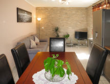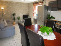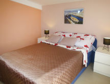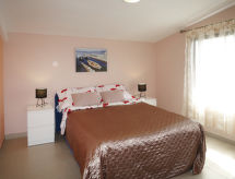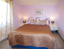 4 -sobna kuća 80 m2 na 2 etaže. Dnevni boravak/blagovaona s TV-om sa sat. prijemnikom i klima uređajem. Izlaz na terasu. 1 soba s 1 franc. krevetom (160 cm, dužina 200 cm). Otvorena kuhinja (1 ploča za kuhanje, pećnica, perilica za suđe, 3 plamena za kuhanje, toster, kuhalo za vodu, zamrzivač, el. aparat za kavu). Tuš/WC. Gornji kat: predsoblje s 1 kaučem za 2 osobe (160 cm, dužina 200 cm), klima uređajem. 2 sobe, svaka soba s 1 franc. krevetom (140 cm, dužina 200 cm). Tuš/WC. Klima uređaj, grijanje toplim zrakom. Balkon, terasa (natkrita). Garnitura za sjedenje, balkonski namještaj, ležaljke. Pogled na more. Na raspolaganju: Internet (wireless LAN [WLAN], besplatan). Najviše 3 kućna ljubimca / psa dozvoljena.- postrojenja