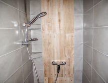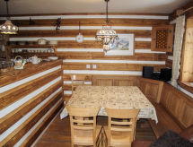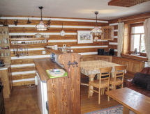 6 -sobni chalet na 2 etaže. Djelomično spušten strop, stilski uređen: otvoreni dnevni boravak s 1 kaučem za 1 osobu, otvorenim kaminom, TV-om sa sat. prijemnikom i muzičkom linijom. Izlaz u vrt, na terasu. Dnevno-spavaća soba s 1 kaučem za 2 osobe, kuhinjskim blokom, tušem/WC-om i TV-om sa sat. prijemnikom. Kuhinja (4 ploče za kuhanje, pećnica, mikrovalna pećnica) s stolom za blagovanje. 2 x tuš/WC, Sauna. Gornji kat: 4 sobe, svaka soba s 2 kreveta i 1 bračnim krevetom. Grijanje na plin. Terasa, vrt. Garnitura za sjedenje. Lijep pogled u daljini na planine i krajolik. Na raspolaganju: Internet (wireless LAN [WLAN], besplatan).- postrojenja