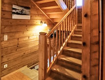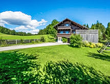 6 -sobni chalet 130 m2. Prostrano, djelomično spušten strop, komforno i stilski uređen: blagovaona s kutom za blagovanje, kabelskom TV i kaljevom peći. Izlaz na terasu. Dnevni boravak. Otvorena kuhinja (pećnica, perilica za suđe, 4 staklokeramičke ploče za kuhanje, zamrzivač, el. aparat za kavu). Tuš/bidet/WC, odv. WC, duplim umivaonikom. Donji kat: 1 bračna soba s tušem/WC-om. 1 soba s 2 kreveta. Gornji kat: 1 bračna soba. Izlaz na balkon. 1 soba s 2 kreveta. Velika terasa, prema jugu. Garnitura za sjedenje, balkonski namještaj, ležaljke, ostava. Prekrasan panoramski pogled na planine i krajolik. Na raspolaganju: perilica za rublje, sef, glačalo, visoka dječja stolica, dječji krevetić, sušilo za kosu, drvo (uklj.). Internet (wireless LAN [WLAN], besplatan). Dodatna informacija: kuća za nepušače. Protupožarni alarm, vatrogasni aparat. U slučaju boravka manjeg broja gostiju od maksimalnog kapaciteta objekta, neće biti na raspolaganju sve smještajne jedinice.- postrojenja