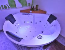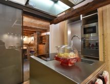 8 -sobni chalet 250 m2 na 3 etaže. Prostrano, djelomično spušten strop, stilski i s puno drva uređen: veliki dnevni boravak/blagovaona s otvorenim kaminom, stolom za blagovanje i TV-om (plosnatim TV ekranom). Izlaz na terasu. Velika blagovaona s otvorenim kaminom i stolom za blagovanje. Izlaz u vrt. Mali dnevni boravak, visina stropa 175 cm. Mali dnevni boravak, visina stropa 175 cm s 1 kaučem za 2 osobe i TV-om (plosnatim TV ekranom). Kuhinja (pećnica, perilica za suđe, 4 staklokeramičke ploče za kuhanje, toster, kuhalo za vodu, zamrzivač, el. aparat za kavu, kuhinjski otok, kombinirana mikrovalna pećnica). Tuš/bidet/WC. Donji kat: salon s hidromasažna kada. Tuš/bidet/WC. Gornji kat: 1 bračna soba s kosim stropom s tušem/bidetom/WC-om. 1 bračna soba s kosim stropom s tušem/bidetom/WC-om. 1 soba s kosim stropom s 2 kreveta i tušem/bidetom/WC-om. Drveni pod, prirodni kameni pod. Mala terasa. Garnitura za sjedenje. Pogled na planine i na grad. Na raspolaganju: perilica za rublje, sušilica, visoka dječja stolica, dječji krevetić, sušilo za kosu, drvo (uklj.). Internet (wireless LAN [WLAN], besplatan). Dodatna informacija: prikladno za obitelji. Kuća za nepušače. Najviše 1 kućni ljubimac / pas dozvoljen. Vlastiti ulaz, vatrogasni aparat. CIR: 014035-CNI-00020- postrojenja