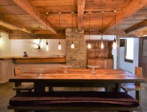 Veliki, povijesni chalet "Baita Barin", 1'400 m n.m., nadograđen s jedne strane, godina izgradnje 1593, renoviran godine 2013. U centru mjesta Madesimo, u četvrti s vilama, odlična pozicija: u samom centru, a ipak mirno, 100 m od skijališta. Za samostalno korištenje: mali vrt (nije ograđen) - travnjak. U kući: sauna, hidromasažni bazen, prostorija za relaksaciju, spremište za skije, centralno grijanje. Zimi molimo ponijeti lance za snijeg. Parking (za 2 automobila, natkriti, uz doplatu) uz kuću. Trgovina živežnim namirnicama, supermarket, restoran 50 m, bar 100 m, autobusna postaja 50 m. Sjedežnica, škola skijanja, škola skijanja za djecu 100 m, staza za skijaško trčanje 1.5 km, dječje igralište 150 m. Poznata jezera u blizini: Lago di Como 45 km. Pješačke staze: Andossi - Giardino Alpino Valcava, Lago d'Emet - Pizzo Spadolazzo, Sentiero del Cardinello, Val Febbraro. Dodatna informacija: U slučaju povoljnih snježnih uvjeta pristup do kuće na skijama.Interior