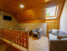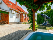 Balatonszárszó 25 km od mjesta Siófok: Kuća s 2 apartmana. U samom mjestu, mirno, sunčano mjesto, 1 km od jezera. Za zajedničko korištenje: parcela (ograđena), vrt - cvijeće, bazen pravokutni grijani (3 x 2 m, 100 cm dubok, sezonska dostupnost: 01.May. - 30.Sep.). Mjesto za sjedenje. U kući: wireless LAN [WLAN], klimatizacija (uz doplatu). Trgovina živežnim namirnicama, restoran 200 m, plaža s travom 1 km.Interior