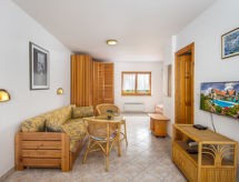 "Amarillo 2", 1 -sobni studio 45 m2, u prizemlju. Objekt pogodan za 2 odraslih + 2 djece. Udobno uređen: 1 soba s 1 franc. krevetom i 1 krevetom na izvlačenje (2 osobe), kuhinjskim blokom, tušem/WC-om, TV-om sa sat. prijemnikom i klima uređajem. Izlaz na terasu. Terasa 10 m2. Garnitura za sjedenje. Parking. Dodatna informacija: apartman za nepušače. EG19009153- postrojenja