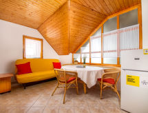 "Amarillo 3", 2 -sobni apartman 45 m2. Ukusno i udobno uređen: dnevni boravak/blagovaona s 1 kaučem za 1 osobu. 1 soba s 1 franc. krevetom i 1 krevetom na izvlačenje (1 osobe), kuhinjskim blokom i tušem/WC-om. Izlaz na balkon. Ležaljke. Parking. Dodatna informacija: apartman za nepušače. EG19009160- postrojenja