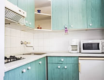 "Cortaderia 2", 2 -sobni apartman 60 m2. Komforno uređen: dnevni boravak/blagovaona s TV-om i klima uređajem. Galerija s 2 kreveta i 1 franc. krevetom. Izlaz na balkon. (2 ploče za kuhanje, mikrovalna pećnica). Tuš/WC. Garnitura za sjedenje, vrtni roštilj. MA20011848- postrojenja