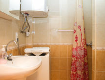 4 -sobni apartman 85 m2. Svrsishodno uređen: dnevni boravak s TV-om sa sat. prijemnikom. Izlaz na terasu. 1 soba s 1 franc. krevetom. Mala kuhinja (2 ploče za kuhanje, mikrovalna pećnica) s stolom za blagovanje. Tuš/WC. Gornji kat: 1 soba s 1 franc. krevetom. Izlaz na balkon. 1 soba s 2 kreveta. Izlaz na balkon. Tuš/WC. Balkon, terasa. Garnitura za sjedenje, balkonski namještaj, vrtni roštilj (prijenosni). Parking.- postrojenja