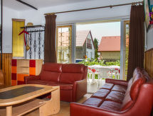 Balatonboglár: Kuća u nizu "Pino", na 2 kata. U samom mjestu, mirno, sunčano mjesto, 600 m od jezera. Za samostalno korištenje: vrt. U kući: perilica za rublje. Trgovina živežnim namirnicama 1 km, restoran 500 m, plaža s travom 600 m.Interior