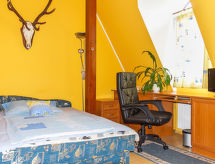 5 -sobna polovica dvojne kuće 100 m2. Komforno uređena: dnevni boravak s otvorenim kaminom i TV-om sa sat. prijemnikom. 1 soba s 1 krevetom na izvlačenje (2 osobe). Otvorena kuhinja (4 ploče za kuhanje, pećnica, perilica za suđe, mikrovalna pećnica, zamrzivač). Kada/tuš, odv. WC. Gornji kat: 2 sobe, svaka soba s 1 franc. krevetom. 1 soba s 2 kreveta. Mala, otvorena kuhinja). Kada/WC s kutnom kadom. Balkon. Vrtni roštilj (prijenosni). Parking (ograđen, 2 automobila). MA22047085- Aktivnosti u blizini