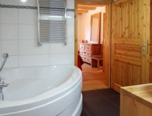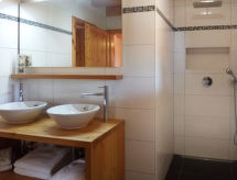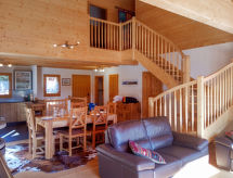 "Banksia", 5 -sobni chalet 180 m2 na 2 etaže, prema jugoistoku. Prostrano, komforno i ukusno uređen: predsoblje. Veliki dnevni boravak/blagovaona s panoramskim prozorom s kabelskom TV, plosnatim TV ekranom, DVD-om i peći na drva. Izlaz na balkon, na terasu. 1 soba s 1 franc. krevetom (160 cm, dužina 200 cm), tušem/WC-om, duplim umivaonikom i s kutnom kadom. Otvorena kuhinja (4 Indukcione ploče, mikrovalna pećnica, el. aparat za kavu, raclette roštilj, set za fondue (chinoise, sir)). Gornji kat: 1 soba s 1 franc. krevetom (1 x 160 cm, dužina 200 cm). 2 sobe, svaka soba s 2 kreveta. Tuš/WC, duplim umivaonikom. Balkon, terasa. Garnitura za sjedenje. Lijep pogled na planine i mjesto. Na raspolaganju: perilica za rublje, sušilica, dječji krevetić do 3 godine, sušilo za kosu. Internet (wireless LAN [WLAN], besplatan). Parking (natkrit, 1 automobil) uz kuću. Dodatna informacija: prikladno za obitelji. Apartman za nepušače.- postrojenja