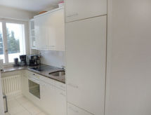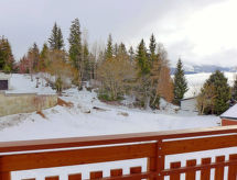 4 -sobni apartman 90 m2 na 2. katu. Lijepo uređen: dnevni boravak/blagovaona s kabelskom TV (plosnatim TV ekranom). 1 soba s 1 franc. krevetom (160 cm, dužina 200 cm). 1 soba s 2 kreveta (90 cm, dužina 200 cm). 1 soba s 1 krevetom (90 cm, dužina 200 cm). Mala kuhinja (pećnica, 4 staklokeramičke ploče za kuhanje, toster, kuhalo za vodu, mikrovalna pećnica, zamrzivač, el. aparat za kavu, Doze za mašinu za kavu (Nespresso) uz doplatu, raclette roštilj, set za fondue (chinoise, sir)). Tuš/WC. Mali balkon, prema jugoistoku. Djelomičan pogled na planine i krajolik. Na raspolaganju: glačalo, visoka dječja stolica, dječji krevetić do 2 godine, sušilo za kosu. Internet (wireless LAN [WLAN]). IPod docking station. Dodatna informacija: apartman za nepušače.- postrojenja