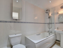 2 -sobni apartman u prizemlju. Prostrano i svijetlo, komforno i ukusno uređen: otvoreni dnevni boravak s TV-om, plosnatim TV ekranom i DVD-om. 1 bračna soba s 1 bračnim krevetom, kadom/tušem/WC-om i TV-om (plosnatim TV ekranom), DVD-om. 1 soba s 2 kreveta. Otvorena kuhinja (4 ploče za kuhanje, pećnica, mikrovalna pećnica, zamrzivač) s stolom za blagovanje. Tuš/WC. Grijanje. Garnitura za sjedenje. Na raspolaganju: perilica za rublje, sušilica. Internet (wireless LAN [WLAN], besplatan). Dodatna informacija: kuća za nepušače. 1 kućni ljubimac / pas dozvoljen.- Značajke smještaja