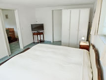 1 -sobni apartman 31 m2, u prizemlju. Svrsishodno i udobno uređen: 1 soba 17 m2 s 1 bračnim krevetom i TV-om sa sat. prijemnikom (plosnatim TV ekranom). Izlaz na mjesto za sjedenje u vrtu. Kuhinja/dn. boravak (pećnica, perilica za suđe, 4 staklokeramičke ploče za kuhanje, mikrovalna pećnica) s stolom za blagovanje. Tuš/WC. Vrtna terasa 8 m2, prema jugu. Garnitura za sjedenje, zimski vrt. Djelomičan na jezero, planine i mjesto. Na raspolaganju: Internet (wireless LAN [WLAN], besplatan). Parking uz kuću. Dodatna informacija: apartman za nepušače.- postrojenja