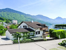 Ugodna kuća s 2 apartmana "Beau Site", na 3 kata. U samom mjestu, 1 km od centra mjesta, mirno, sunčano mjesto u jednoj četvrti za stanovanje, 300 m od jezera. Za zajedničko korištenje: vrt (ograđen). Mjesto za sjedenje, vrtna garnitura za sjedenje. U kući: centralno grijanje, perilica za rublje (za zajedničko korištenje). Prilaz autom do kuće. Put sa stepenicama do kuće. Parking uz kuću. Trgovina živežnim namirnicama, supermarket, pekara, autobusna postaja, vanjski bazen 500 m, jezero Vierwaldstättersee 300 m. Tenis 500 m, jahanje konja 800 m, kabinska žičara 1.5 km, dječje igralište 500 m. Dodatna informacija: vlasnik živi u istoj kući. U istoj kući iznajmljuju se dodatni apartmani.Interior