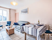 Kuća s 2 apartmana "Beaumer", na 2 kata. U samom mjestu 2.5 km od centra mjesta Carnac Plage, mirno mjesto, 600 m od mora, 600 m od plaže, u slijepoj ulici. Trgovina 2.5 km, supermarket 800 m, restoran 100 m, pješčana plaža "Men Dû" 600 m, termalno kupalište "Thalazur" 2.5 km. Sportska lučica 3 km, golf teren (18 rupa) 13 km, škola jedrenja 3 km. U blizini: Les Alignements de Carnac 3 km, La Trinité Sur Mer 3 km, Auray 15 km, Presqu'île de Quiberon 16 km, Vannes 35 km, Lorient 52 km. Dodatna informacija: U istoj kući iznajmljuju se dodatni apartmani. Objekt ref.br. FR2618.176.2 je smješten na istoj parceli.Interior