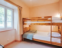 3 -sobni apartman 60 m2 na 2 etaže, u prizemlju. Lijepo uređen: dnevni boravak/blagovaona s TV-om (plosnatim TV ekranom). Otvorena kuhinja (4 ploče za kuhanje, pećnica, el. aparat za kavu, kombinirana mikrovalna pećnica). Odv. WC. Gornji kat: 1 soba s 1 franc. krevetom (1 x 140 cm, dužina 190 cm). 1 soba s 1 x 2 kreveta na kat (90 cm, dužina 190 cm). Tuš/WC. Mala vrtna terasa 8 m2. Garnitura za sjedenje, ležaljke (2). Na raspolaganju: perilica za rublje. Internet (wireless LAN [WLAN], besplatan). Parking uz kuću. Dodatna informacija: najviše 2 kućna ljubimca / psa dozvoljena. Protupožarni alarm.- postrojenja