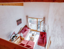 4 -sobni apartman na 2 nivoa 66 m2 na 9. katu, prema jugu. Komforno uređen: predsoblje. Dnevni boravak/blagovaona s TV-om. Izlaz na balkon. 1 soba s 2 kreveta (90 cm), kadom. Izlaz na balkon. 1 soba s 1 bračnim krevetom (140 cm), kadom/WC-om. Izlaz na balkon. Otvorena kuhinja (pećnica, perilica za suđe, 4 staklokeramičke ploče za kuhanje, toster, kuhalo za vodu, mikrovalna pećnica, el. aparat za kavu, raclette roštilj) s stolom za blagovanje. Odv. WC. Gornji kat: galerija. 1 otvorena soba s kosim stropom s 2 kreveta (90 cm). 1 mala soba s kosim stropom s 1 krevetom (90 cm). Kada. El. grijanje. Veliki balkon 9 m2, prema jugu. Balkonski namještaj. Vrlo lijep panoramski pogled na planine i mjesto. Na raspolaganju: Internet (wireless LAN [WLAN], besplatan). Parking br. 41 (natkrit). Dodatna informacija: apartman za nepušače. TV samo FR.- Značajke smještaja