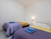 "Bella Vista", 6 -sobna kuća 95 m2 na 3 etaže. Svrsishodno uređena: dnevni boravak/blagovaona s otvorenim kaminom, digitalnim TV i klima uređajem. Izlaz na terasu. 1 soba s 2 kreveta (90 cm, dužina 190 cm). Otvorena kuhinja (3 ploče za kuhanje, pećnica, perilica za suđe, toster, kuhalo za vodu, mikrovalna pećnica, el. aparat za kavu). Kada/bidet/WC. Grijanje. Donji kat: (vanjske stepenice) dnevni boravak/blagovaona. Izlaz na terasu. 2 sobe, svaka soba s 2 kreveta (90 cm, dužina 190 cm). Kuhinjska niša (2 ploče za kuhanje). Tuš/WC. Gornji kat: 1 soba s 1 franc. krevetom (135 cm, dužina 190 cm), tušem/WC-om. Izlaz na terasu. Terasa. Garnitura za sjedenje, vrtni roštilj, ležaljke (4). Prekrasan pogled na more, planine i mjesto. Na raspolaganju: perilica za rublje, glačalo, visoka dječja stolica, dječji krevetić do 2 godine. Internet (wireless LAN [WLAN], besplatan). Dodatna informacija: kuća za nepušače. Najviše 1 kućni ljubimac / pas dozvoljen. TV samo ES. HUTG-008566- Značajke smještaja