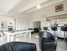 Lijepi residence "Bella Vista", na 3 kata. U četvrti Saint Martin, na rubu mjesta, 1 km od centra mjesta, u jednoj četvrti za stanovanje, 1.2 km od mora, 1.2 km od plaže, 500 m od lagune. Za zajedničko korištenje: bazen (15 x 7 m, 160 cm dubok, sezonska dostupnost: 15.Jun. - 15.Sep.). U kući: dizalo. Trgovina živežnim namirnicama 100 m, supermarket 400 m, trgovački centar 200 m, restoran 400 m, pekara 100 m. Sportska lučica 400 m, golf teren (27 rupa) 500 m, škola jedrenja 1 km. U blizini: Aqualand 500 m, Ile des Loisirs 1.2 km.Interior