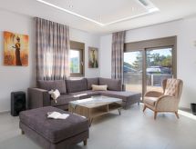 Moderna, lijepa vila "Bella Vista", na 3 kata, zasebna. U četvrti Ialyssos, mirno, sunčano mjesto, 2.6 km od mora, 2.6 km od plaže. Za samostalno korištenje: lijepi, njegovani terasasti vrt - cvijeće i drveće, bazen pravokutni (40 m2, 100- 160 cm dubok, sezonska dostupnost: 01.Apr. - 30.Nov.). Stolni tenis. Parking uz kuću. Trgovina živežnim namirnicama 2.5 km, supermarket 2.5 km, restoran 2.5 km, bar 2.5 km, pekara 2.5 km, cafe 2.5 km, pješčana plaža "Ialyssos" 2.6 km. Golf teren (18 rupa) 14.6 km, jahanje konja 2.2 km. U blizini: Valley of the Butterflies 18.6 km, Lindos Acropolis 45.8 km, Asklipio Castle 58.5 km, Palace of the Grand Master of Knights 11.9 km, Medieval City of Rhodes 9.8 km, Waterpark Rhodes 12.1 km. Dodatna informacija: preporučljiv vlastiti prijevoz. Prikladno za obitelji, oprema za bebe na upit (uklj.). Grupe mladih samo na upit.Interior
