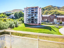 1 -sobni apartman 23 m2 na 3. katu, prema zapadu. Lijepo i udobno uređen: dnevni boravak/blagovaona s panoramskim prozorom s 1 krevetom na izvlačenje (2 osobe 2 x 80 cm, dužina 190 cm), TV-om (plosnatim TV ekranom), DVD-om i električnim roletnama. Izlaz na balkon. Niša za spavanje s zavjesom s 1 kaučem za 2 osobe (140 cm, dužina 190 cm), električnim roletnama. Mala kuhinja (2 ploče za kuhanje, pećnica, toster, kuhalo za vodu, mikrovalna pećnica). Kada, odv. WC. Grijanje. Parketni pod. Balkon, balkon 4 m2, prema zapadu. Lijep pogled na planine. Na raspolaganju: glačalo, sušilo za kosu. Internet (wireless LAN [WLAN], uz doplatu). Dodatna informacija: apartman za nepušače. Protupožarni alarm.- Značajke smještaja
