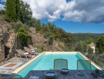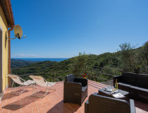 Lijepa obiteljska kuća "Bellaria", zasebna, godina izgradnje 2020, okružena drvećem. 300 m od centra mjesta Valloria, na rubu mjesta, 14 km od centra mjesta Imperia, 33 km od centra mjesta San Remo, sunčano, povišeno mjesto na padini, 14 km od mora, u zelenom. Za zajedničko korištenje: tenis. Za samostalno korištenje: prirodno ostavljena parcela 3'000 m2 - drveće, voćnjak, bazen (8 x 4 m, 140 cm dubok, sezonska dostupnost: 01.Apr. - 15.Nov.). Vanjski tuš, hidromasažni bazen. Bazen održava vlasnik/vrtlar. U kući: spremište za bicikle, najam bicikli. 1.5 km dugački neravan, uski prilaz autom do parceli (bijela cesta). Put sa stepenicama (10 stepenica) do kuće. Parking (za 2 automobila) na parceli. Trgovina 4 km, supermarket 14 km, restoran, bar 300 m, pekara 4 km, pješčana plaža "Imperia" 14 km.Interior
