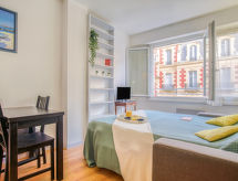 Residence "Bellevue Clemenceau", na 9 kata. U centru mjesta Biarritz, centralno, prometno mjesto, 150 m od mora, 150 m od plaže. U kompleksu: dizalo. Trgovina 50 m, trgovina živežnim namirnicama 100 m, supermarket 3 km, restoran 100 m, pekara 50 m, autobusna postaja "Bellevue Parking" 50 m, željeznička postaja 2.5 km, pješčana plaža "La Grande Plage" 150 m, natkriveni bazen 200 m. Golf teren (18 rupa) 2.8 km, škola jedrenja na dasci 150 m. U blizini: Marché des Halles 280 m, Port des Pêcheurs 400 m, Aquarium 750 m, Phare de Biarritz 1.7 km, Bayonne 8 km, St-Jean-de-Luz 17 km. Pješačke staze: La Rhune 28 km. Dodatna informacija: ključeve ćete preuzeti u turističkoj agenciji Interhome. Noćni klub/diskoteka u blizini.Interior