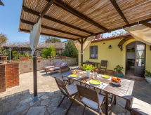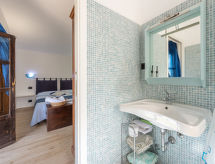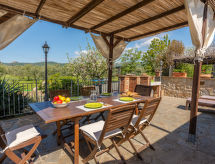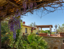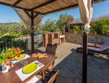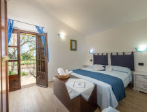 "Bellosguardo", 3 -sobna kuća 60 m2. Moderno uređena: dnevno-spavaća soba s 1 kaučem za 1 osobu, otvorenim kaminom, stolom za blagovanje i TV-om sa sat. prijemnikom. Izlaz na terasu. 1 soba s 1 x 2 kreveta na kat, 1 franc. krevetom (160 cm). 1 soba s 1 franc. krevetom (160 cm), kadom/bidetom/WC-om. Izlaz na terasu. Otvorena kuhinja (pećnica, perilica za suđe, 4 plamena za kuhanje, toster, zamrzivač, el. aparat za kavu). Tuš/bidet/WC. Terasa 90 m2. Garnitura za sjedenje, vrtni roštilj, ležaljke, ostava. Panoramski pogled. Na raspolaganju: perilica za rublje, mrežice protiv komaraca, visoka dječja stolica, dječji krevetić. Internet (wireless LAN [WLAN], besplatan). Dodatna informacija: apartman za nepušače. 2 kućna ljubimca / psa dozvoljena. Raspored kreveta je fleksibilan. Dostupno je više mogućnosti za spavanje od maksimalno dopuštenog broja osoba koji se ipak ne smije prekoračiti- Značajke smještaja