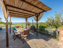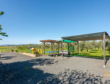 Lijepa ladanjska kuća "Bellosguardo", godina izgradnje 2015, okružena drvećem i poljima. 9 km od centra mjesta Roccastrada, 5 km od centra mjesta Montemassi, 35 km od centra mjesta Follonica, 35 km od mora. Za zajedničko korištenje: parcela 10 ha, voćnjak, bazen ograđen (5 x 3 m, 120 cm dubok, sezonska dostupnost: 15.May. - 30.Sep.). Za samostalno korištenje: stolni tenis, igralište za odbojku (ljuljačka). U kući: stolni nogomet. Parking na parceli. Trgovina 5 km, željeznička postaja "Montepescali" 15 km, pješčana plaža 35 km. Golf teren (18 rupa) 26 km. U blizini: Grosseto 28 km. Pješačke staze: Mountain-bike 4 km. Na imanju su životinje. Prodaja domaćih poljoprivrednih proizvoda. Dodatna informacija: vlasnik živi na istoj parceli. Vlasnik ima psa.Interior