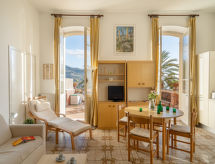 Stari, lijepi residence "Belvedere". 24 apartmana u residenceu. U četvrti Latte 5 km od centra mjesta Ventimiglia, 6 km od centra mjesta Menton (Côte d'Azur), sunčano, povišeno mjesto na padini, 800 m od mora. Za zajedničko korištenje: veliki, njegovani terasasti vrt, 3'000 m2 - travnjak i bilje, bazen (15 x 5 m, 100- 230 cm dubok, sezonska dostupnost: 01.Jul. - 31.Aug.). Vanjski tuš, terasa. Trgovina 650 m, supermarket 1.5 km, restoran, bar 750 m, željeznička postaja "Ventimiglia" 5 km, šljunčana plaža 750 m (mala). U blizini: Giardini Botanici Hanbury 750 m, Balzi Rossi 3.5 km. Dodatna informacija: glavna prometnica u blizini. Željeznička pruga u blizini.Interior