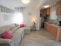 Stambeni objekt "Benidorm Center", na 7 kata. U samom mjestu 300 m od centra mjesta ciudad, centralno, prometno, sunčano mjesto, 200 m od mora, 200 m od plaže. U kući: dizalo. Supermarket 200 m, restoran 50 m, bar 10 m, autobusna postaja "Urbano" 200 m, željeznička postaja "Benidor-Alicante" 1.3 km. Golf teren (18 rupa) 5 km. U blizini: Aqualandia 4 km, Mundomar 4 km, Terra Mitica 5 km, Terra Natura 5 km, Alicante 52 km, Aeropuerto de Alicante 57 km. Vlasnik ne prihvaća grupe mladih. Susjedstvo izrazito osjetljivo na buku. Očekuje se mir i pristojno ponašanje.Interior