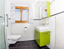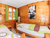 "Bergfink Obergeschoss", 3 -sobni apartman 51 m2 na 2. katu. Renoviran godine 2013, lijepo i udobno uređen: dnevni boravak/blagovaona s TV-om sa sat. prijemnikom (plosnatim TV ekranom), muzičkom linijom. Izlaz na balkon, prema zapadu. 1 bračna soba s 2 kreveta. Izlaz na balkon, prema jugu. 1 mala soba s 2 kreveta. Kuhinja (pećnica, perilica za suđe, 4 staklokeramičke ploče za kuhanje, el. aparat za kavu) s stolom za blagovanje. Kada/WC. Balkon. Balkonski namještaj, ležaljke (2). Lijep pogled na planine i krajolik. Na raspolaganju: Internet (wireless LAN [WLAN], besplatan). Parking uz kuću. Dodatna informacija: apartman za nepušače. 1 kućni ljubimac / pas dozvoljen.- postrojenja