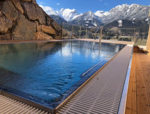 "Hochwurzen mit privatem Pool", 4 -sobni chalet 100 m2. Svijetlo, komforno i luksuzno uređen: dnevni boravak/blagovaona s švedskom peći, kutom za blagovanje, TV-om sa sat. prijemnikom i plosnatim TV ekranom. 2 bračne sobe. 1 bračna soba s 1 x 2 kreveta na kat. Otvorena kuhinja (pećnica, perilica za suđe, 4 staklokeramičke ploče za kuhanje, toster, kuhalo za vodu, zamrzivač, el. aparat za kavu). 3 x tuš/WC, odv. WC. Balkon. Balkonski namještaj. Vrlo lijep panoramski pogled na planine. Na raspolaganju: sauna. Internet (wireless LAN [WLAN], besplatan). Dodatna informacija: apartman za nepušače. Rezervira se tipski objekt (kuća, apartman) i moguća su manja odstupanja. Chalet ima vanjski bazen za samostalno korištenje!- postrojenja