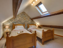 4 -sobna obiteljska kuća na 2 etaže. Prostrano i svijetlo, komforno i ukusno uređena: otvoreni dnevni boravak s TV-om, plosnatim TV ekranom i DVD-om. 2 bračne sobe, svaka soba s 1 bračnim krevetom. Otvorena kuhinja (4 ploče za kuhanje, pećnica, perilica za suđe, mikrovalna pećnica, zamrzivač) s stolom za blagovanje. Kada/tuš/WC. Grijanje. Gornji kat: 1 soba s 2 kreveta. Otvoreni dnevni boravak s TV-om (plosnatim TV ekranom), DVD-om. Grijanje. Vrtni roštilj. Lijep pogled na krajolik. Na raspolaganju: Internet (wireless LAN [WLAN], besplatan). Dodatna informacija: kuća za nepušače. 2 kućna ljubimca / psa dozvoljena.- Značajke smještaja