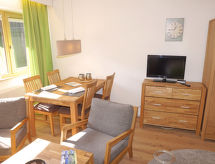 1 -sobni apartman 35 m2. Udobno uređen: dnevni boravak/blagovaona s 1 kaučem za 2 osobe, TV-om sa sat. prijemnikom i radiom. Kuhinjska niša u predsoblju). Kada/WC. Balkon. Na raspolaganju: telefon. Internet (wireless LAN [WLAN], besplatan). Dodatna informacija: 1 kućni ljubimac / pas dozvoljen. Protupožarni alarm. Rezervira se tipski objekt (kuća, apartman) i moguća su manja odstupanja.- postrojenja