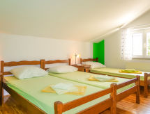 "Blekic (MLK305)", 3 -sobni apartman 60 m2 na 1. katu. Dnevni boravak/blagovaona s kosim stropom s 1 kaučem za 1 osobu, TV-om sa sat. prijemnikom i klima uređajem. Izlaz na terasu. 1 soba s kosim stropom s 3 kreveta (90 cm, dužina 200 cm). 1 soba s kosim stropom s 2 kreveta (90 cm, dužina 200 cm). Otvorena kuhinja (2 staklokeramičke ploče za kuhanje, toster, kuhalo za vodu, mikrovalna pećnica, el. aparat za kavu). Tuš/WC. Klima uređaj (uz doplatu). Balkon. Balkonski namještaj. Pogled na more. Na raspolaganju: mrežice protiv komaraca, dječji krevetić. Internet (wireless LAN [WLAN], besplatan). Parking (2 automobila). Dodatna informacija: kuća za nepušače. Najviše 3 kućna ljubimca / psa dozvoljena.- postrojenja