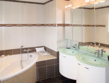 "Bleue (STP120)", 4 -sobna kuća 120 m2. Svrsishodno uređena: dnevni boravak/blagovaona s otvorenim kaminom (samo za dekoraciju), stolom za blagovanje, TV-om, muzičkom linijom i DVD-om. Izlaz na terasu. Dnevni boravak s zimskim vrtom. 1 soba s zavjesom s 1 franc. krevetom, kadom/WC-om i umivaonikom. Izlaz na terasu. 1 soba s 1 franc. krevetom. 1 soba s 1 kaučem za 2 osobe. Otvorena kuhinja (1 ploča za kuhanje, pećnica, perilica za suđe, 3 plamena za kuhanje, toster, kuhalo za vodu, mikrovalna pećnica, zamrzivač, el. aparat za kavu). Tuš, odv. WC, kada/tuš/WC, duplim umivaonikom. El. grijanje. Terasa. Garnitura za sjedenje, vrtni roštilj (prijenosni), ležaljke (6). Na raspolaganju: perilica za rublje, glačalo, visoka dječja stolica, dječji krevetić. Internet (wireless LAN [WLAN], besplatan). Dodatna informacija: kuća za nepušače.- Značajke smještaja
