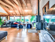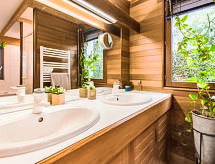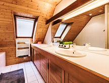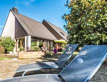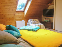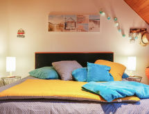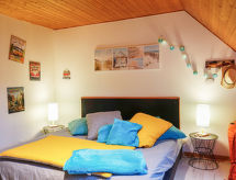 5 -sobna kuća 150 m2 na 2 etaže. Komforno i lijepo uređena: veliki dnevni boravak/blagovaona s TV-om (plosnatim TV ekranom), peći na drva. Izlaz na terasu. 1 soba s 1 franc. krevetom (1 x 160 cm, dužina 200 cm), tušem/WC-om i TV-om (plosnatim TV ekranom). Otvorena kuhinja (pećnica, perilica za suđe, 4 staklokeramičke ploče za kuhanje, mikrovalna pećnica, zamrzivač, el. aparat za kavu). Tuš/WC. Gornji kat: 1 soba s 1 franc. krevetom (1 x 140 cm, dužina 190 cm), TV-om (plosnatim TV ekranom). 1 soba s 2 kreveta (90 cm, dužina 190 cm), TV-om (plosnatim TV ekranom). 1 soba s 2 kreveta (80 cm, dužina 190 cm), TV-om (plosnatim TV ekranom). Kada/tuš, odv. WC. El. grijanje. Terasa 90 m2. Garnitura za sjedenje, vrtni roštilj, ležaljke (4). Pogled na vrt. Na raspolaganju: perilica za rublje, sušilica, glačalo, sušilo za kosu. Internet (wireless LAN [WLAN], besplatan). Parking (ograđen, 2 automobila). Dodatna informacija: prikladno za obitelji. Kuća za nepušače. 1 kućni ljubimac / pas dozvoljen. Protupožarni alarm.- Značajke smještaja