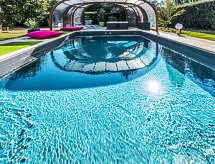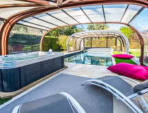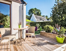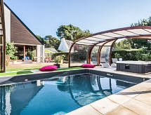 Lijepa obiteljska kuća "Blue Moustoir". Na rubu mjesta, 2.5 km od centra mjesta Carnac, 3.5 km od mora, 3.5 km od plaže. Za samostalno korištenje: njegovani vrt (ograđen), unutarnji bazen pravokutni, grijani (4 x 8 m). Hidromasažni bazen. Trgovina 3.5 km, trgovina živežnim namirnicama 3.5 km, supermarket 4 km, restoran 3.5 km, pješčana plaža "Grande Plage de Carnac" 4.5 km, termalno kupalište "Thalassothérapie de Carnac" 4.5 km. Golf teren (18 rupa) 10 km, škola jedrenja na dasci 6 km, škola jedrenja 5 km. U blizini: Carnac et les alignements 4 km, La Presqu'ile de Quiberon 20 km, Vannes 50 km, Lorient 60 km, Belle Ile en Mer, Golfe du Morbihan.Interior