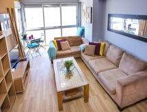 Vrlo veliki, lijepi, komforni stambeni objekt "Bonaire". U samom mjestu Playa de Gandía, 10 m od mora, 10 m od plaže, prijeći cestu. Za zajedničko korištenje: bazen (20 x 13 m, 80- 210 cm dubok, sezonska dostupnost: 01.Jan. - 31.Dec.). Bazen za djecu, vanjski tuš. Zajednička garaža br. I7. Supermarket 1.2 km, restoran 10 m, bar 20 m, cafe 50 m, pješčana plaža "Playa de Gandía" 10 m. Sportska lučica 250 m, škola jedrenja na dasci 50 m, škola jedrenja 250 m. Vlasnik ne prihvaća grupe mladih.Interior