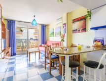 "Bonaire II - La Concha", 3 -sobni apartman 58 m2 na 10. katu. Svijetlo, komforno uređen: dnevni boravak/blagovaona s stolom za blagovanje, digitalnim TV, plosnatim TV ekranom, klima uređajem i grijanjem na topli zrak. Izlaz na terasu. 1 soba s 1 franc. krevetom (135 cm, dužina 190 cm). 1 soba s 2 kreveta (90 cm, dužina 190 cm). Kuhinja (pećnica, 4 staklokeramičke ploče za kuhanje, toster, mikrovalna pećnica, zamrzivač, el. aparat za kavu). Kada/bidet/WC. Terasa 10 m2. Garnitura za sjedenje. Na raspolaganju: perilica za rublje, glačalo, sušilo za kosu. Internet (wireless LAN [WLAN], besplatan). Parking br. 83 uz kuću. Dodatna informacija: apartman za nepušače. 1 kućni ljubimac / pas dozvoljen. VT-41701-CS- postrojenja