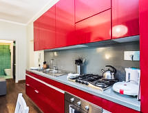 "Borgo Angelico", 4 -sobni apartman 90 m2 na 2. katu. Svijetlo, komforno i moderno uređen: dnevni boravak s 1 kaučem za 1 osobu, 1 krevetom na izvlačenje i digitalnim TV. 1 bračna soba s kadom/bidetom/WC-om. 1 bračna soba. Otvorena kuhinja (4 ploče za kuhanje, pećnica, perilica za suđe). Tuš/bidet/WC. Grijanje na plin, klima uređaj. Pogled na na grad. Na raspolaganju: perilica za rublje, glačalo, sušilo za kosu. Internet (wireless LAN [WLAN], besplatan).- Značajke smještaja